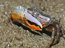 Gelasimus vocans is a species of fiddler crab.[2] It is found across the Indo-Pacific from the Red Sea, Zanzibar and Madagascar to Indonesia and the central Pacific Ocean.[3] It lives in burrows up to 50 centimetres (20 in) deep.[3] Several forms of G. vocans have been recognised, with their authors often granting them the taxonomic rank of full species or subspecies.[4]