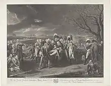 Hearing that the French were nearer to Hondschoote than most of his covering force, at 8:00 pm Freytag gathered his soldiers into two columns and began to retreat toward Rexpoëde, believing the village was still in Coalition hands. When the right column reached Rexpoëde, it was charged by French cavalrymen who wounded and captured Freytag. The right column recoiled from the village and stumbled cross-country, but Johann Ludwig, Reichsgraf von Wallmoden-Gimborn leading the left column attacked Rexpoëde. The Hanoverians rescued Freytag and routed the French from the village, reaching Hondschoote early the next morning. Houchard and Jourdan spent all of 7 September rallying the center column at Herzeele.[8] Bussche was also credited with the recapture of Rexpoëde and the freeing of Freytag.[1] On 8 September Houchard with 22,000 soldiers defeated Wallmoden with 14,600 at Hondschoote after a stiff fight.[9] The Duke of York abandoned the siege that day and withdrew.[4]