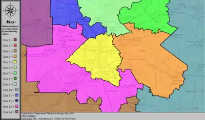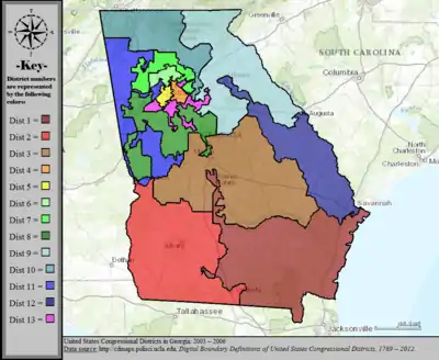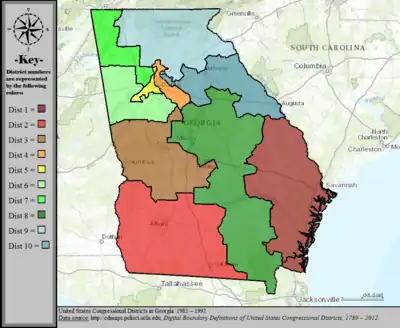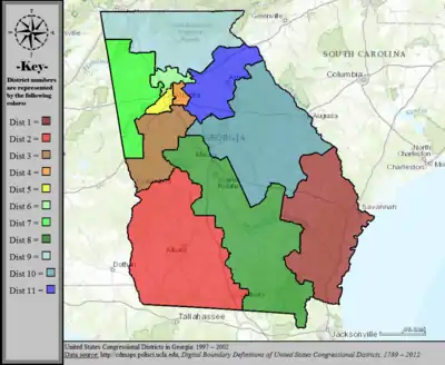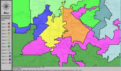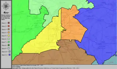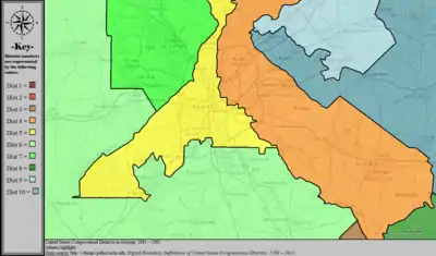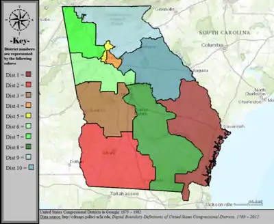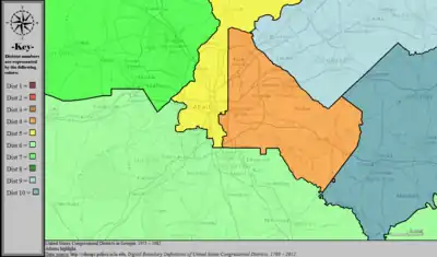 Table of United States congressional district boundary maps in the State of Georgia, presented chronologically.[3] All redistricting events that took place in Georgia between 1973 and 2013 are shown.