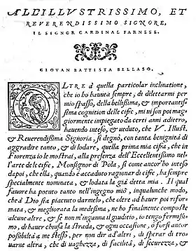 La cifra del Sig. Giovan Battista Belaso ... Venetia 1553. Foreword.