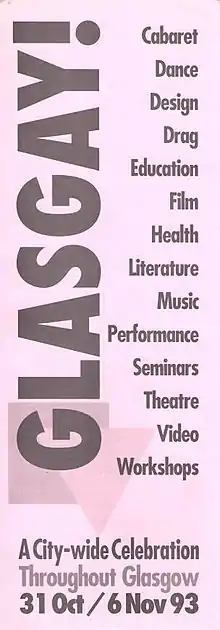 2. 1 2 3 4 5 6 7 Rodger, Hannah (3 February 2019). "Two decades of Glasgay! How the legendary festival helped shape LGBT Scotland". HeraldScotland. Retrieved 30 January 2023.