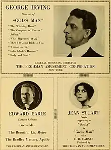 God's Man is a 1917 American silent drama film directed by George Irving and starring H.B. Warner, Kate Lester and Albert Tavernier. It is based on the novel of the same title by George Bronson Howard.[1]