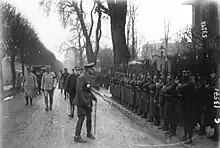 Joffre and British General Douglas Haig inspecting French troops outside of GQG in Chantilly in 1916