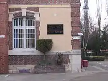 A modern photograph of the GQG headquarters at Romilly-sur-Seine, a school, with plaque commemorating the awarding of the Médaille militaire to Joffre on 26 November 1914 by President Raymond Poincaré