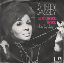 Shirley Bassey had a No. 8 hit in the UK with "Never Never Never", an English version with lyrics by Norman Newell. It was also No. 1 in Australia, No. 1 in South Africa, No. 3 in Singapore, and her only single to make three US charts: No. 48 on the Billboard Hot 100, No. 8 on the Adult Contemporary Chart, and No. 67 on the R&B Chart.