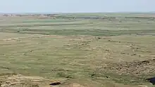 The East Block of the park is located about an hour's drive south of Assiniboia on the south side of the Wood Mountain Hills in Census Division No. 3. The interpretive centre is in the McGowan House at the new Rock Creek Campground and the information centre is at the museum in Wood Mountain Regional Park.[11] The East Block is more of a wilderness area but has views of the badlands of Rock Creek, the Cretaceous–Paleogene boundary, and prairie skies. A one-lane, 11-kilometre (6.8 mi) parkway traverses the Rock Creek Badlands.[12] The East Block contains the Grasslands National Park (east) (SK 023) Important Bird Area.[13]