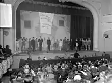 Gélinas on stage after a 1945 performance of Fridolinades