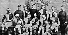 The club was therefore one of the founder members of the British Football Association, and was put under an effective embargo on fixtures, along with other members such as Preston North End, Accrington, and Bolton Wanderers.[26] The situation was only resolved at the end of the season, when the FA legalized professionalism, but by then the club had missed on its best chance to win the FA or Lancashire Cup. A reserve side played in the latter tournament and went out in the third round to Bolton Wanderers, who were able to play five of their first-teamers given the less stringent Lancashire FA rules on residence.[27]