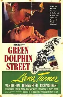Green Dolphin Street is a 1947 American historical drama disaster film directed by Victor Saville and starring Lana Turner, Van Heflin, and Donna Reed. It was produced by Carey Wilson. Based on the 1944 novel Green Dolphin Street by Elizabeth Goudge, it was released by Metro-Goldwyn-Mayer.