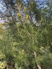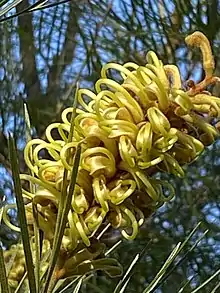 Grevillea hodgei, commonly known as the Coochin Hills grevillea,[2] is a species of flowering plant in the family Proteaceae and is endemic to a restricted area of Queensland. It is an erect shrub with deeply divided leaves with erect, linear leaflets, and clusters of hairy, cream-coloured flowers.