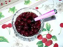 Griottines are cherries macerated in eau de vie or kirsch,[1] common to Fougerolles (Haute-Saône) in Franche-Comté, eastern France. They can be eaten alone, or used in a number of local dishes both savoury and sweet.