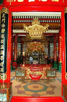 Guanyin Gumiao Temple (Chinese: 觀音古廟; pinyin: Guānyīn Gǔmiào; Jyutping: gun1 jam1 gu2 miu6*2, also known as the Guangdong Guanyin Temple) is one of two major Chinese temples located within Latha Township in Yangon's Chinatown. It was founded by the Cantonese community of Yangon in 1823, but was destroyed by a fire in December 1855, and subsequently rebuilt in 1864, with two additional brick buildings to the side built in 1872.[1][2] The temple is located on Maha Bandula Road and is dedicated to Guanyin, a Buddhist bodhisattva corresponding to the Burmese Buddhist bodhisattva Avalokiteśvara (လောကနတ်, Lawka Nat).