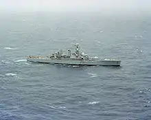HMS Naiad (F39) was a Leander-class frigate of the Royal Navy (RN). Like the rest of the class, Naiad was named after a figure or figure of mythology, in this case, the Naiads of Greek mythology. Naiad was built by Yarrow Shipbuilders of Scotstoun. She was launched on 4 November 1963 and commissioned on 15 March 1965.[1]