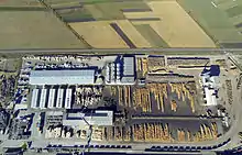 The sawmill in Reci, Covasna County, commenced operations in August 2015, following a 150 million euro investment.[11] The production unit spans over 70 hectares[12] and has a cutting capacity of 800.000 m3 round wood.[13] The factory employs 520.[14][15]
