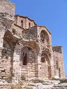 The Church of Hagia Sophia (Greek: Ἁγία Σοφία, romanized: Hagía Sophía, lit.'Holy Wisdom' Greek pronunciation: [aˈʝia soˈfia]) or Holy Wisdom is a Byzantine church in the medieval town of Monemvasia, Peloponnese, Greece. It forms part of the wider archaeological site of Monemvasia. It was built on the upper town of Monemvasia, and was originally dedicated to Panagia Hodegetria. It is the most important monument of Monemvasia. The Venetians, who held Monemvasia for some time, used it as a Catholic church dedicated to Madonna, while during the Ottoman period it was converted into a mosque before being restored to Christian worship upon Greece's independence.