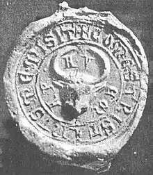 By the 1230s, Buzád I's son Arnold I founded the kindred's monastery at Hahót, the namesake seat of his family, dedicated to Margaret of Antioch.[8] Archaeologists argued the Hahóts erected their monastery on a basis of a royal convent founded by Ladislaus I of Hungary. However, in fact, the Hahót monastery was only a common burial place among the Hahót clan, as its branches moved away from each other by then.[9] In 1248, Michael I of the Hahold branch founded a Franciscan friary in Szemenye (today in Muraszemenye), also dedicated to Mary the Virgin.[10][11] Later the Bánfi de Alsólendva family, descendants of the Hahót kindred through his brother Hahold III, became patron of the monastery.[10] One of the members of the more powerful Buzád branch, Atyusz (or Csák I) erected a Premonstratensian monastery at Rajk around 1270.[12]