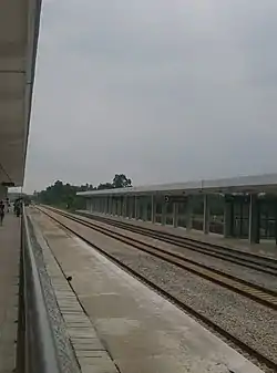 The Hainan western ring railway (Chinese: 海南西环铁路; pinyin: Hǎinán xīhuán tiělù) is a standard-gauge railway running along the coast of the western half of Hainan Island in South China. It connects the provincial capital Haikou on the island's north coast with Sanya, the major city on Hainan's south coast. The rail line is 363.8 km long; its terminals are Haikou railway station and Sanya railway station. Cargo trains enter this railway from Zhanjiang, Guangdong at the South Port of the Guangdong–Hainan Railway.