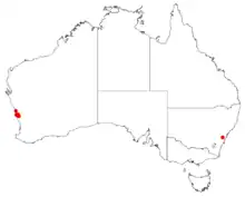 Hakea neurophylla is a rare species restricted to the Mt Lesueur - Eneabba area north of Perth in heathland sand over laterite usually on ridge tops.[7][5]
