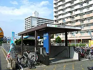 Hakozaki-Kyūdai-mae Station (箱崎九大前駅, Hakozaki-Kyūdai-mae-eki) is a subway station on the Fukuoka City Subway Hakozaki Line in Higashi-ku, Fukuoka, Japan. Kyūdai-mae means "in front of Kyushu University". Its station symbol is a pine branch with leaves which branch look like Kyushu University's initials Chinese character 九, because a pine‐covered area is named Ciyono-matsubara (千代の松原) is near this station.