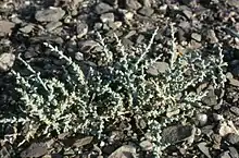 Some species of Halothamnus are important grazing plants for camels, sheep and goats,[6] and are therefore used for the recultivation of pasture,[7] for example Halothamnus subaphyllus, Halothamnus auriculus and Halothamnus glaucus. Halothamnus subaphyllus is planted for the stabilisation of mobile sands[6] and for the production of the medically used alkaloid Salsolin.[8][9] Halothamnus somalensis is used as medicinal plant against parasitic worms.[10] In former times Halothamnus subaphyllus and Halothamnus glaucus were used to extract potash for making soap.[11]