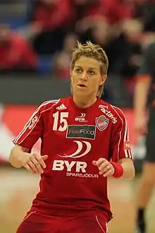 Hanna Guðrún Stefánsdóttir (born 11 February 1979) is an Icelandic team handball player for Stjarnan of the Úrvalsdeild kvenna. She has won the Icelandic championship five times[2] and the Icelandic Cup six times.[3] She has been selected the Úrvalsdeild Player of the Year three times and led the league in scoring in 2003, 2005 and 2009.[3] Hanna has participated in three major international tournaments with the Icelandic national team and is second all-time in both games and goals scored for the team with 458 goals in 142 games.[3]