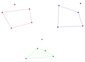 - ↑ In this context, general position means that no two points coincide and no three points are collinear.