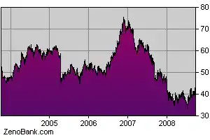 During its period of peak demand, during the late 1990s and early first decade of the 21st century, Harley-Davidson embarked on a program of expanding the number of dealerships throughout the country. At the same time, its current dealers typically had waiting lists that extended up to a year for some of the most popular models. Harley-Davidson, like the auto manufacturers, records a sale not when a consumer buys their product, but rather when it is delivered to a dealer. Therefore, it is possible for the manufacturer to inflate sales numbers by requiring dealers to accept more inventory than desired in a practice called channel stuffing. When demand softened following the unique 2003 model year, this news led to a dramatic decline in the stock price. In April 2004 alone, the price of HOG shares dropped from more than $60 to less than $40. Immediately prior to this decline, retiring CEO Jeffrey Bleustein profited $42 million on the exercise of employee stock options.[97] Harley-Davidson was named as a defendant in numerous class action suits filed by investors who claimed they were intentionally defrauded by Harley-Davidson's management and directors.[98] By January 2007, the price of Harley-Davidson shares reached $70.