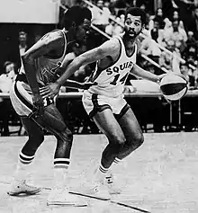 Fox (left) guarding Roland Taylor (right)