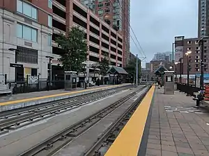 Harsimus Cove station is a station the Hudson–Bergen Light Rail (HBLR) located at Metro Plaza Drive in the Harsimus Section of downtown Jersey City, New Jersey. It is served by the 8th Street–Hoboken and West Side Avenue–Tonnelle Avenue branches.