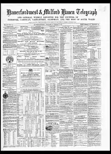 Haverfordwest & Milford Haven Telegraph was a weekly English-language newspaper which circulated Pembrokeshire and Cardiganshire. The paper featured news coverage and editorials on the arts.[1]