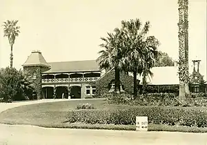 The college initially operated out of two historic residences in Richmond, "Toxana" and "Andrew Towns House", with construction of the campus buildings beginning from 1895. Two central campus precincts, the Quadrangle (the initial teaching area) and Stable Square (the initial base for student practical work), both date from this initial 1890s phase of construction. Stable Square, now the main student recreation and support facility, was designed by Walter Liberty Vernon; it was completed in 1895, burned down in April 1896, and was then rebuilt.[2][3]