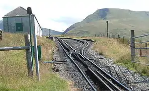 Hebron railway station is an intermediate passing place and former halt on the Snowdon Mountain Railway, located near a long-standing chapel on the lower slopes of Snowdon south of Llanberis, Gwynedd, Wales. It was named after a Calvinistic Methodist chapel that stood nearby,[1] first built in 1797, which now lies in ruins.