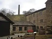 Helmshore Mills are two mills built on the River Ogden in Helmshore, Lancashire. Higher Mill was built in 1796 for William Turner, and Whitaker's Mill was built in the 1820s by the Turner family.[1][2] In their early life they alternated between working wool and cotton. By 1920 they were working shoddy as condensor mule mills; and equipment has been preserved and is still used. The mills closed in 1967 and they were taken over by the Higher Mills Trust, whose trustees included historian and author Chris Aspin and politician Dr Rhodes Boyson, who maintained it as a museum. The mills are said to the most original and best-preserved examples of both cotton spinning and woollen fulling left in the country that are still operational.