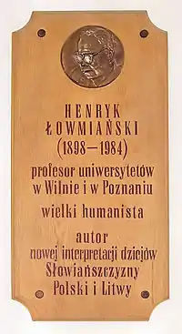 Henryk Łowmiański (August 22, 1898 near Ukmergė - September 4, 1984 in Poznań) was a Polish historian and academic who was an authority on the early history of the Slavic and Baltic people. A researcher of the ancient history of Poland, Lithuania and the Slavs in general, Łowmiański was the author of many works, including most prominently the six-volume monumental monograph Początki Polski (The Beginnings of Poland).[1][2]