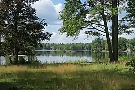 The lake is 319 acres (129 ha) in area with an average depth of 12 feet (3.7 m) and a maximum depth of 20 feet (6.1 m). It is owned by Hickory Hills Landowners, Inc. who own the three beaches and surrounding property. The three beaches are for public use of any residents of the HHLI.[4] There are many different species of fish, including largemouth bass, smallmouth bass, chain pickerel, yellow perch, brown bullhead, golden shiner, sunfish, and bluegill.[4]