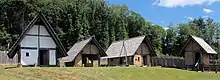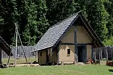 Holes in the ground, sockets for the wooden posts, prove the existence of buildings. It is unknown whether the buildings' purpose was accommodation or storage.