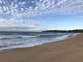 Hills Beach (also known as Opal Cove Beach) is a beach on Korora Bay, located in the city of Coffs Harbour, New South Wales.[1] It is a steep, reflective beach, around 600m long.[1] At its southern end, Hills Beach is bounded by rocks separating it from the neighbouring Korora Beach.[1] Also near the southern end, there is a small creek crossing the beach and a sandy tombolo stretching out to rocks in the sea.[1][2] At the northern end, the beach is bounded by Pine Brush Creek, which has an intermittently open entrance to the sea, and by steep rocks which separate it from the small (150m long) secluded Hills North Beach.[2][3] The sea off the beach is part of the Solitary Islands Marine Park and is a Habitat Protection Zone.[4] The Solitary Islands Coastal Walk, which goes from Red Rock to Sawtell (60 km), runs through Hills Beach.[5]