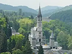 Durand built the church of Saint-André de Bayonne between 1853 and 1862 in collaboration with the Basque architect Hippolyte Guichenné. He built the Priory of the Ursulines in Auch, the Church of Saint-Michel in Condom, Gers, and the churches of Peyrehorade, Soustons and Tartas. He was responsible for the realization of the Basilica of Our Lady of the Immaculate Conception at Lourdes, completed in 1872 and submitted to the Salon the same year.[1] In 1868 the Bishop of Tarbes tried to get Durand admitted to the Legion of Honor for the quality his work in building the Tarbes seminary. After some delay, he was awarded the Legion of Honor in 1875.[1]