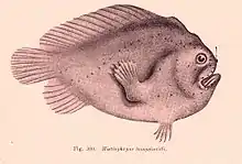 Histiophryne bougainvilli, commonly known as the Smooth Anglerfish, is a frogfish found in the waters of Queensland, New South Wales, and Western Australia. There are an estimated 40 specimens known.[1]