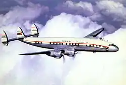 In April 1948 a transatlantic route was started between Havana and Madrid (via Bermuda, the Azores and Lisbon) using Douglas DC-4 aircraft. The DC-4 was Cubana's first four-engine aircraft, and it required five cockpit crew members to operate (captain, first officer, flight engineer, navigator and radio operator). The DC-4 that started the transatlantic route had a pressurized cabin and was christened "Estrella de Cuba" (CU-T188). A second DC-4 was christened "Estrella de Oriente" (CU-T397) and replaced the DC-3s on Cubana's Miami route. The Madrid route was extended to Rome in 1950 (the Madrid-Rome segment was later discontinued). The new route to Europe made Cubana one of the earliest Latin American carriers to establish scheduled transatlantic service.[1] At the time, most European airlines did not have any transatlantic routes, and Cubana became the only carrier offering direct service from continental Europe to the Caribbean. Later, in the early 1950s, the DC-4s were replaced by Lockheed Constellations (L-049), the main type of aircraft used at the time for long-distance commercial air travel.[2]