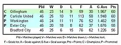 56. The official Football League website Archived 10 February 2007 at the Wayback Machine lists this achievement in second place on the overall list of teams who have conceded the fewest goals in a season, behind Liverpool, who conceded 16 in the 1978–79 season, however, as evidenced by the final 1978–79 First Division table Archived 1 October 2007 at the Wayback Machine, Liverpool played only 42 matches, giving Gillingham the record for a 46-match season.