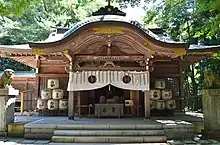 It is a Sōja or a shrine dedicated to enshrining all the kami of Hitachi Province. As a result it, alongside Kashima Shrine (Hitachi Ichinomiya) were the two main shrines of Hitachi Province