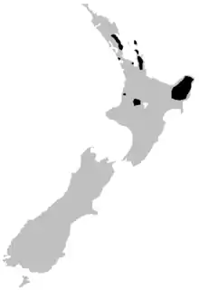 Subfossil remains indicate all native species were once widespread across New Zealand until roughly 200 years ago.[10] Hochstetter's frogs have the most extensive distribution of the native frogs, spanning the upper North Island, including the Waitākere and Hunua Ranges, the Coromandel Peninsula, Great Barrier Island, Maungatautari Ecological Island, and the East Coast.[11] Ten populations of this species have been found to be genetically distinct, owing to the history of glacial isolation.[12]