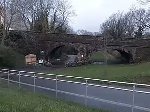 Holywell Town railway station was a station in Holywell, Flintshire, Wales. The station was opened on 1 July 1912 and closed on 6 September 1954.[1][2] There was a single platform with two wooden shelters, a run round loop and extensive goods facilities. The station could be accessed by a sloping path down from a road bridge.[1] There are no remains of the station today, just the track-bed and elevated goods yard site on the northwest side of the road over bridge.