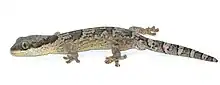 Homopholis fasciata, a nocturnal vertebrate known as the banded velvet gecko or striped velvet gecko, is a small gecko that lives in East Africa.[1][2]