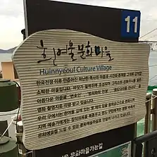 Translation; It is a simple village that retains the traces of the pain and time of the refugee history that was created after the Korean War. This village is a beautiful village resembling Greece's Santorini, built on the cliffs of the sea. This place is attracting attention as a filming place, such as 'Attorneys', 'Nameless Gangster: Rules of the Time' In our district, we are transforming some houses on the huinnyeoul road into creative spaces, encouraging local artists to create their creative minds, and creating a culture and arts village where people can feel culture and art in their daily lives.