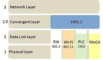 - ↑ Cohen, Etan G.; Ho, Duncan; Mohanty, Bibhu P.; Rajkotia, Purva R. (February 2014). "IEEE 1905.1: Convergent Digital Home Networking". In Berger, Lars T.; Schwager, Andreas; Pagani, Pascal; Schneider, Daniel M. (eds.). MIMO Power Line Communications: Narrow and Broadband Standards, EMC, and Advanced Processing. CRC Press. pp. 391–426. doi:10.1201/b16540-19. ISBN 9781466557529.