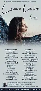 2. 1 2 "Leona Lewis announces 14-date 2016 UK tour". Official Charts Company. 14 September 2015. Archived from the original on 10 December 2015. Retrieved 8 December 2015.
