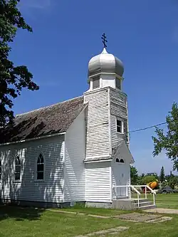 The building was originally an Icelandic Evangelical Lutheran church. It became a Ukrainian Orthodox church in 1937 and an onion dome was later added above the front entry. The Fort Pembina Historical Society now operates it as a museum.[2]