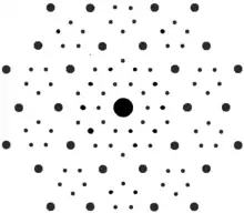 ![]() X-ray diffraction pattern of the natural Al63Cu24Fe13, icosahedrite. | |